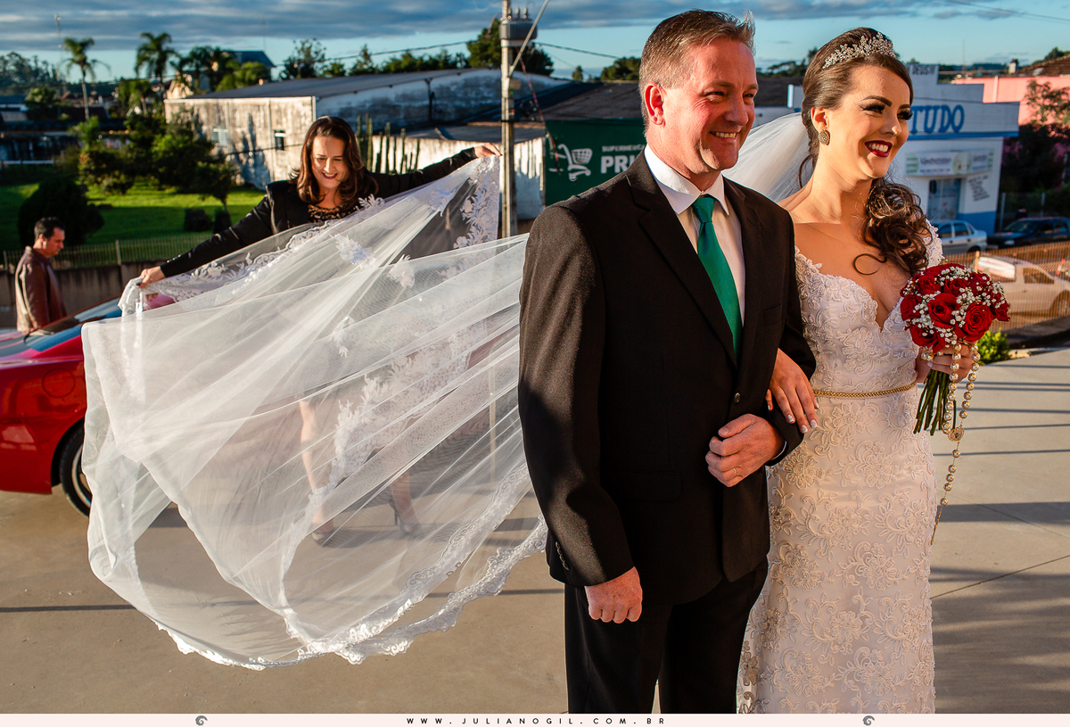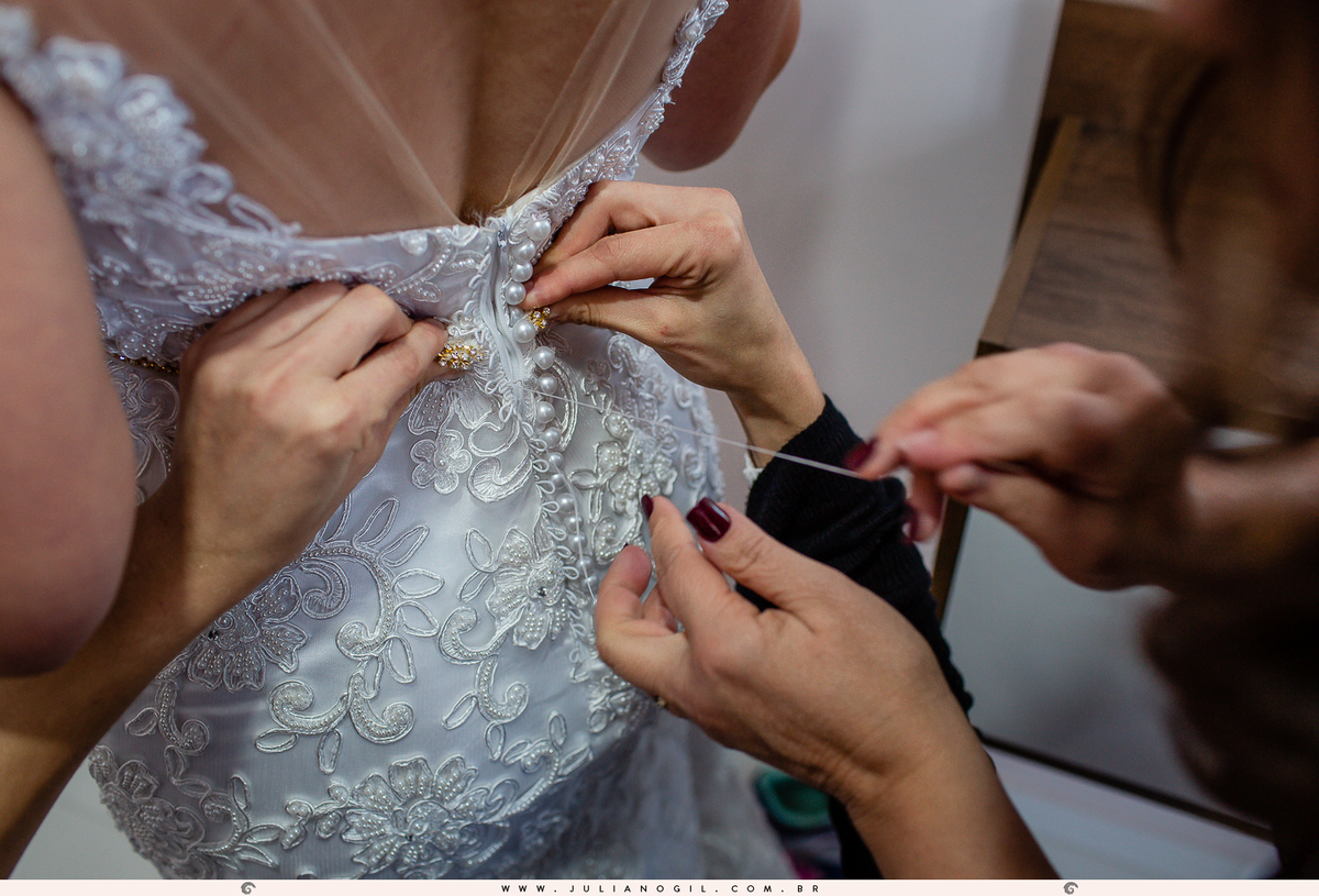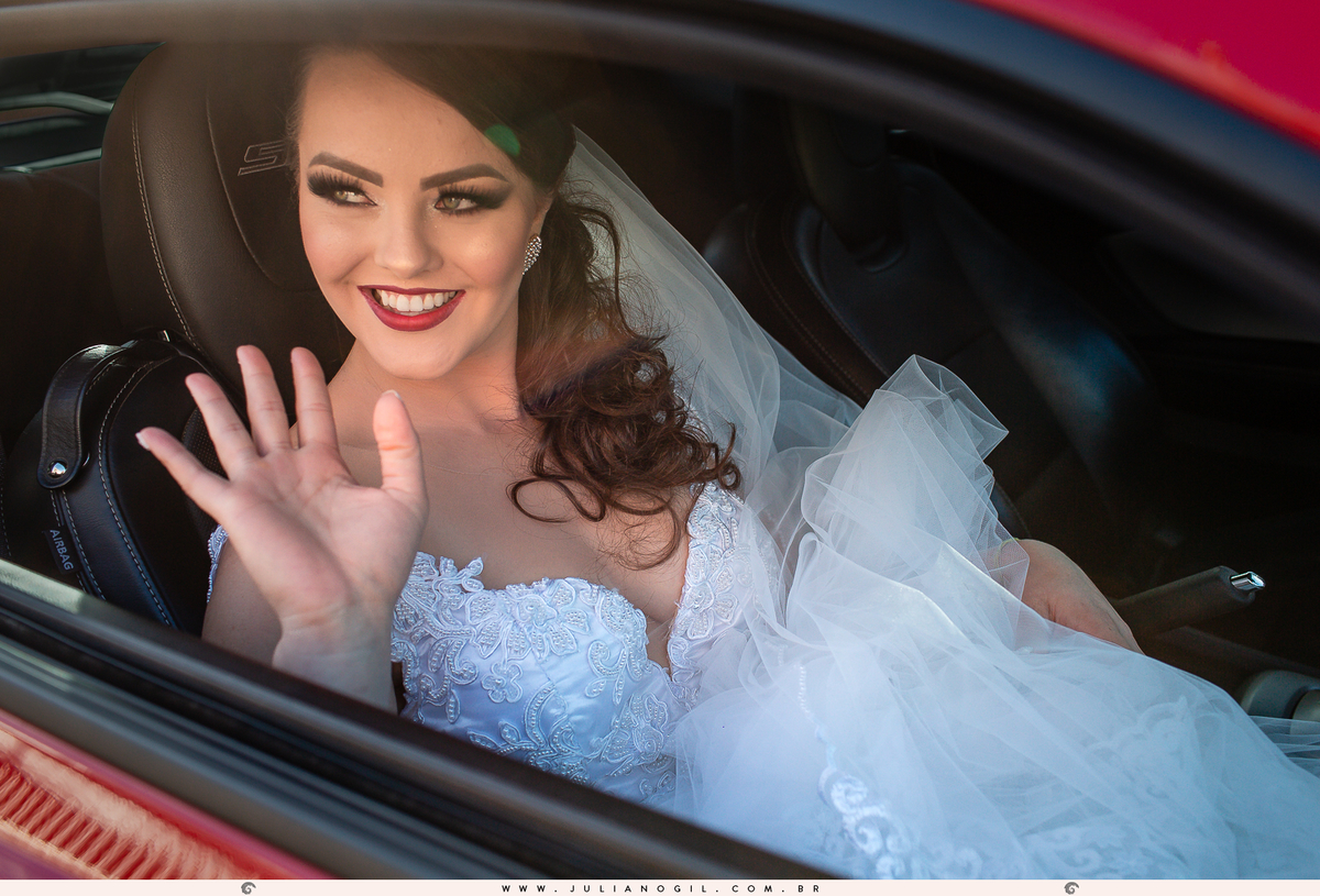 Logo nas primeiras horas da tarde do sábado chegamos na cidade para iniciar os registros de imagem, juntamente com o magnífico cinegrafista Jean Henrique Wichinoski e equipe. Geralmente no dia do casamento as noivas ficam muito nervosas e preocupadas com tudo, mas nossa surpresa foi quando chegamos ao local do making of e nos deparamos com a Larissa sentada em uma cadeira de praia, na varanda da casa, na maior tranquilidade...