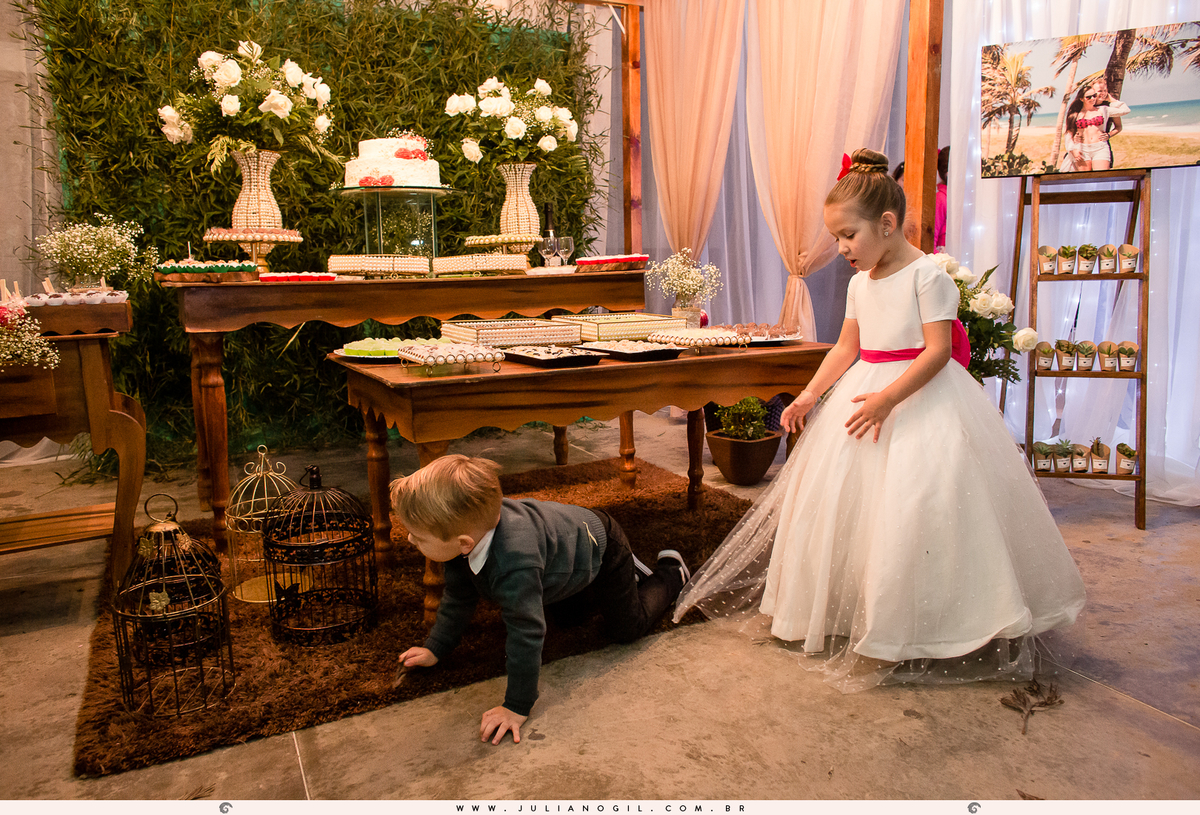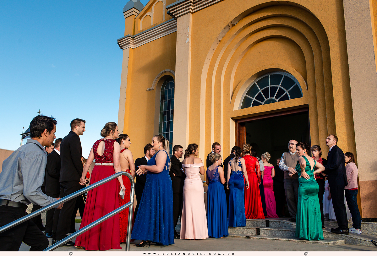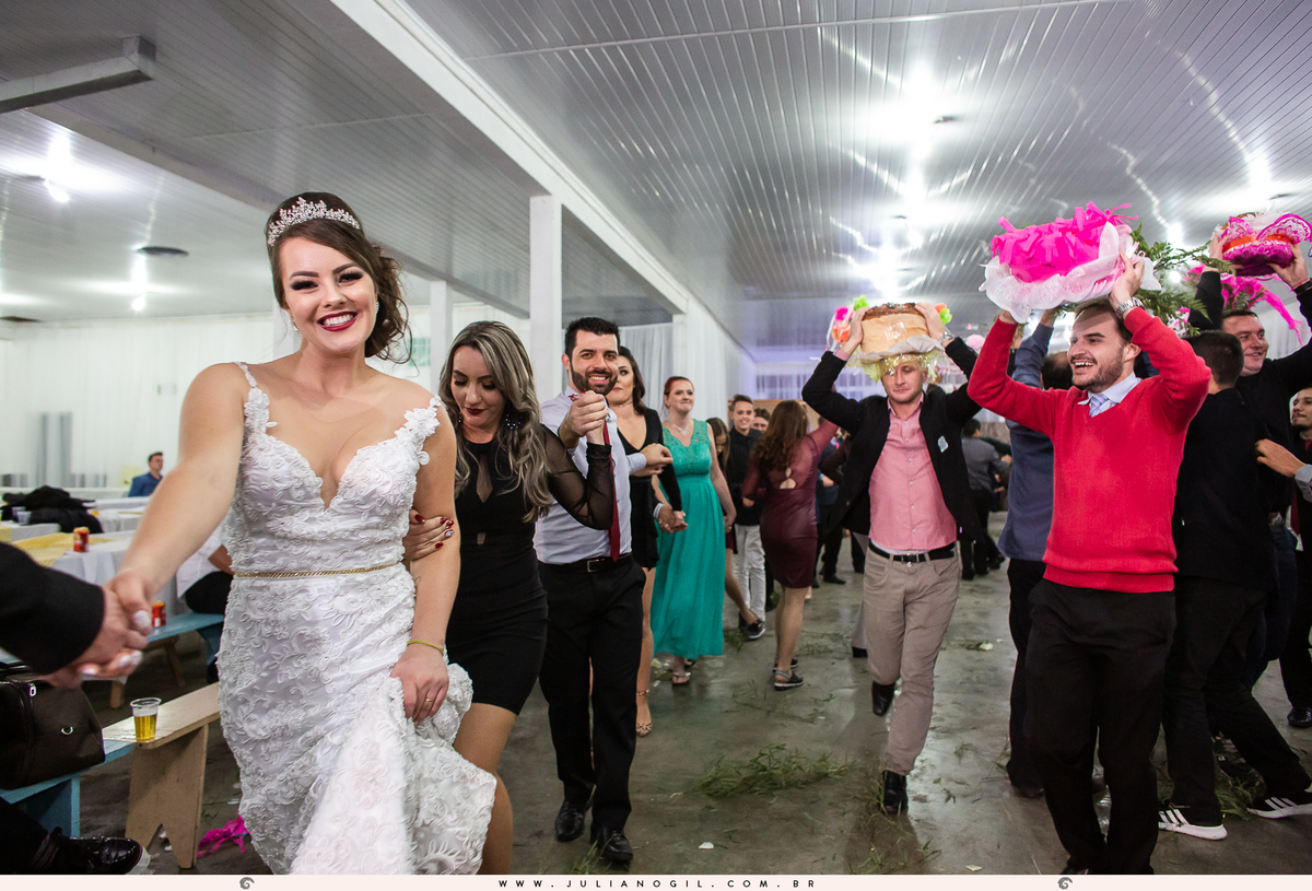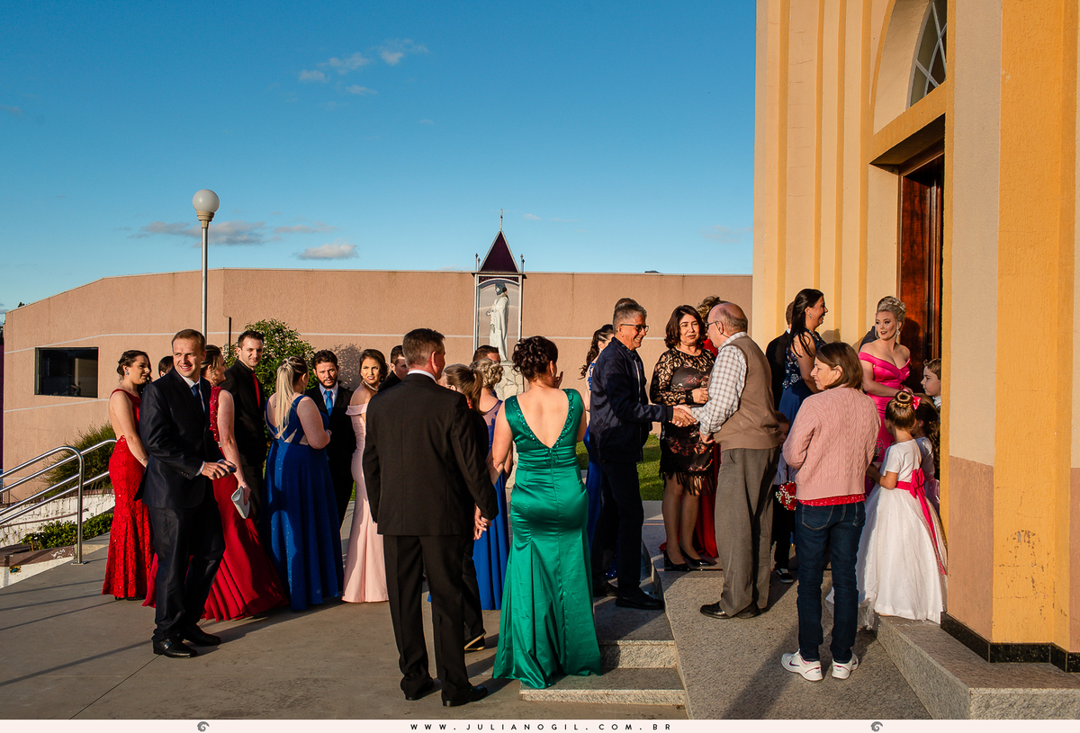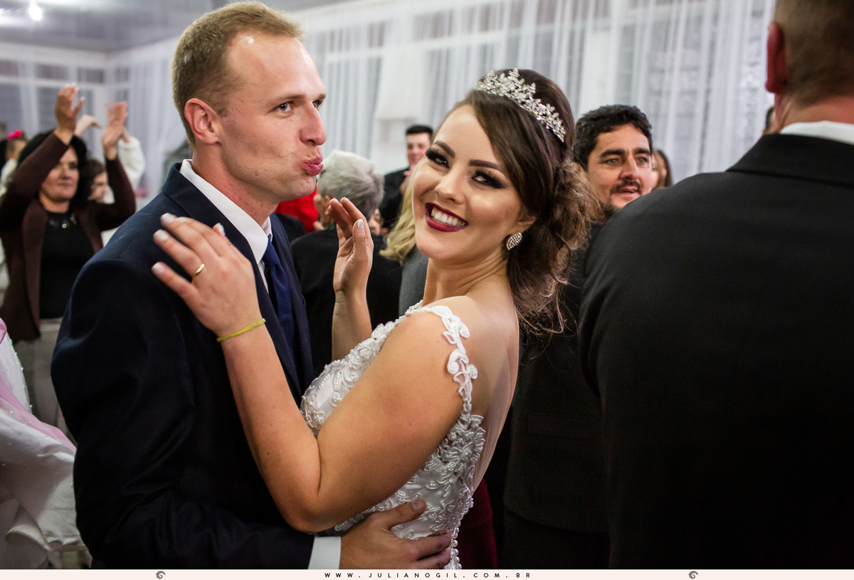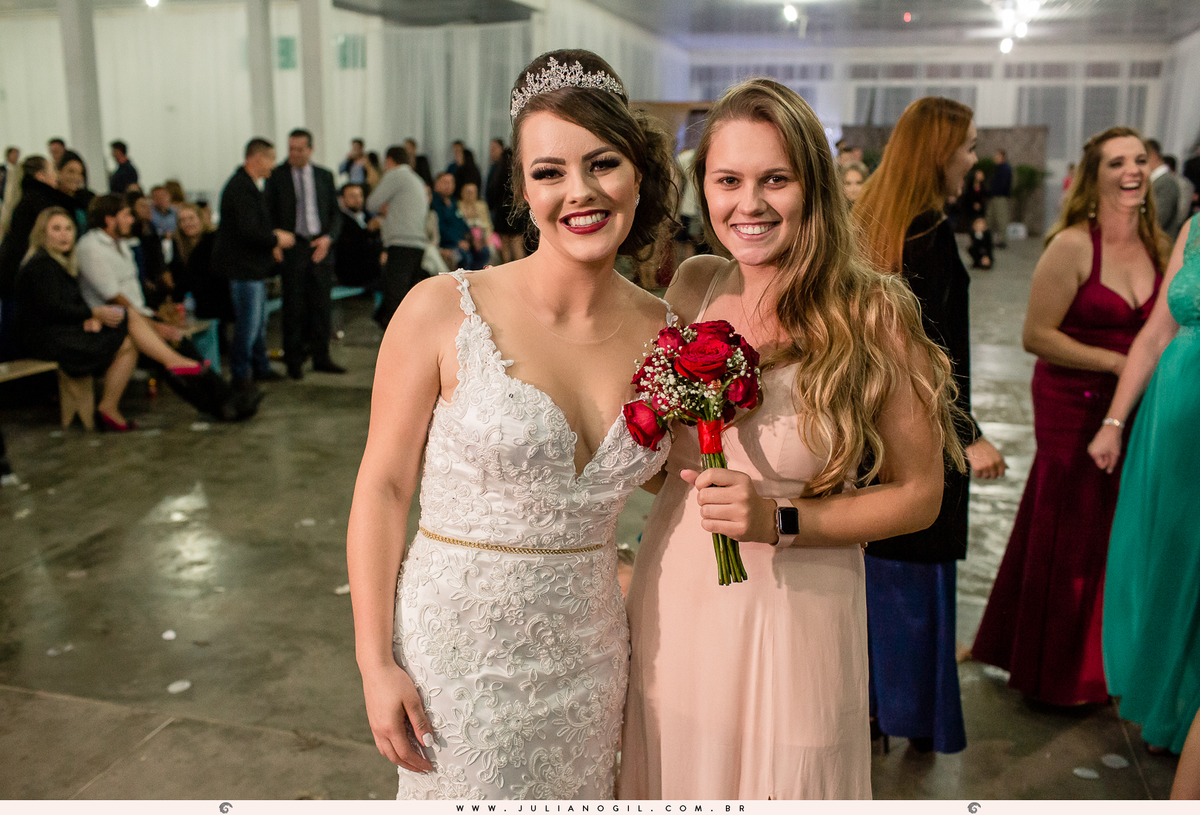 Após a celebração aproximadamente 600 convidados foram recepcionados no salão de festas localizado atrás da Igreja. Com tantas pessoas queridas pelos noivos não se podia esperar uma festa, no mínimo, divertida!