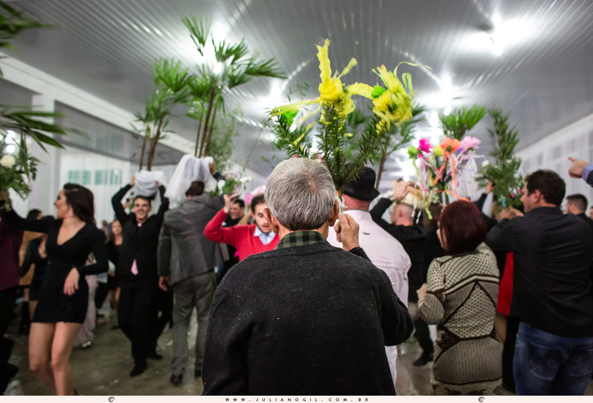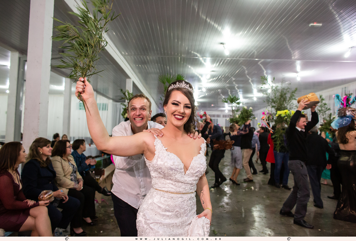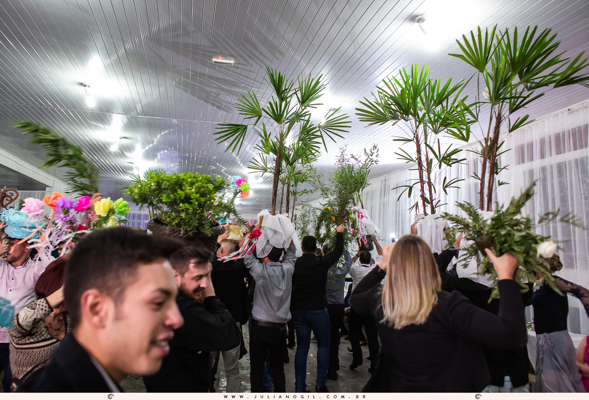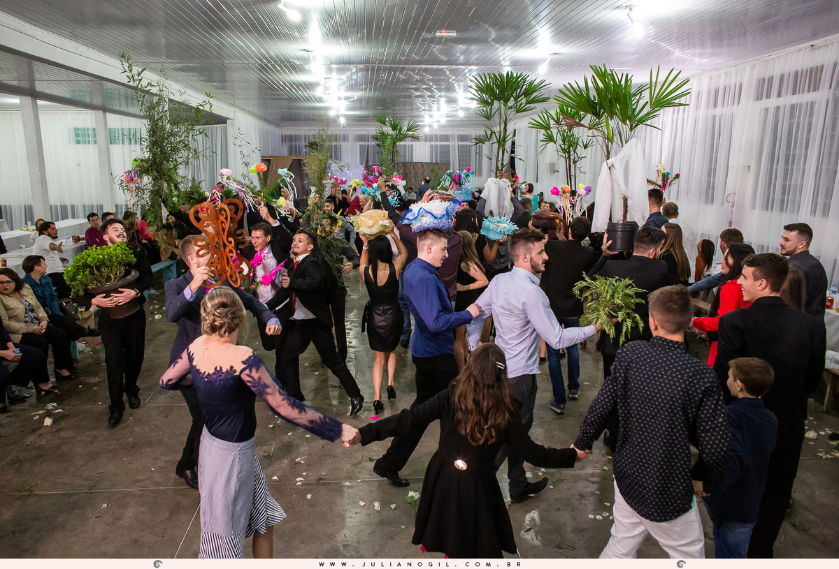 Depois dessa explicação vou continuar com a história... Durante a festa do casamento os convidados fazem uma dança carregando o Korovai, ao som de musicas ucranianas. Normalmente se faz apenas uma vez essa dança, mas no casamento da Larissa e do Marlon essa dança aconteceu 3 vezes! Nas fotos você pode conferir que à partir da segunda dança os convidados já estavam utilizando até a decoração do ambiente para fazer a dança!