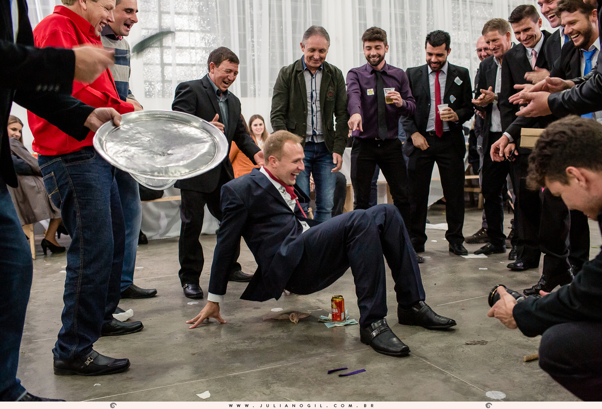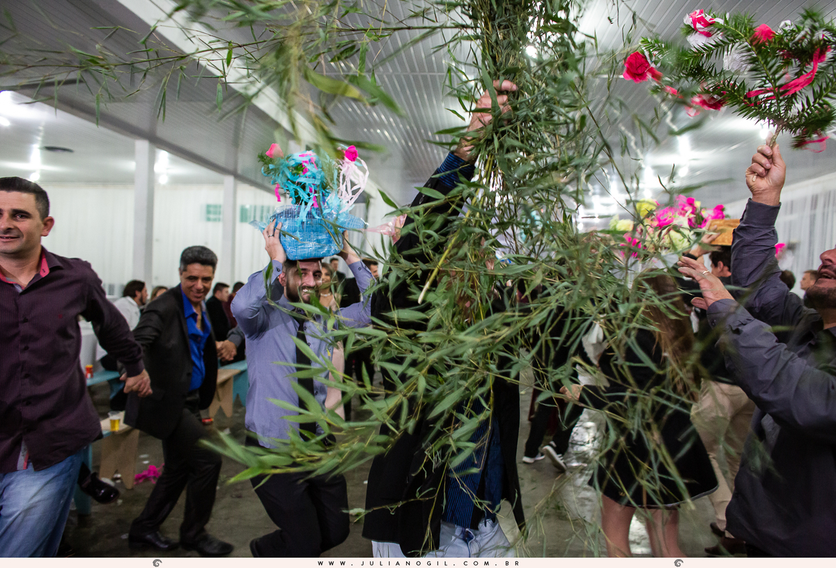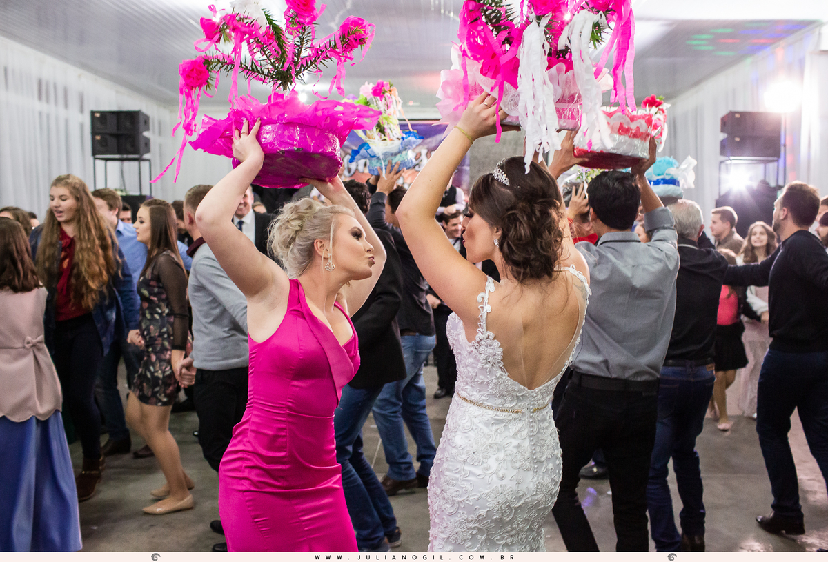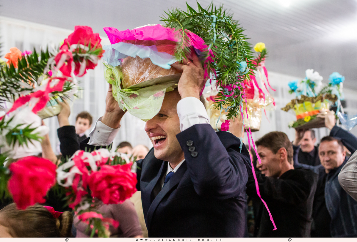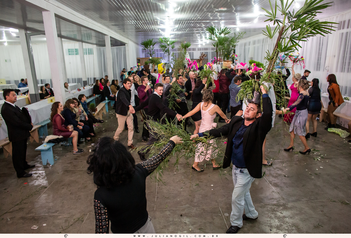 Depois dessa explicação vou continuar com a história... Durante a festa do casamento os convidados fazem uma dança carregando o Korovai, ao som de musicas ucranianas. Normalmente se faz apenas uma vez essa dança, mas no casamento da Larissa e do Marlon essa dança aconteceu 3 vezes! Nas fotos você pode conferir que à partir da segunda dança os convidados já estavam utilizando até a decoração do ambiente para fazer a dança!