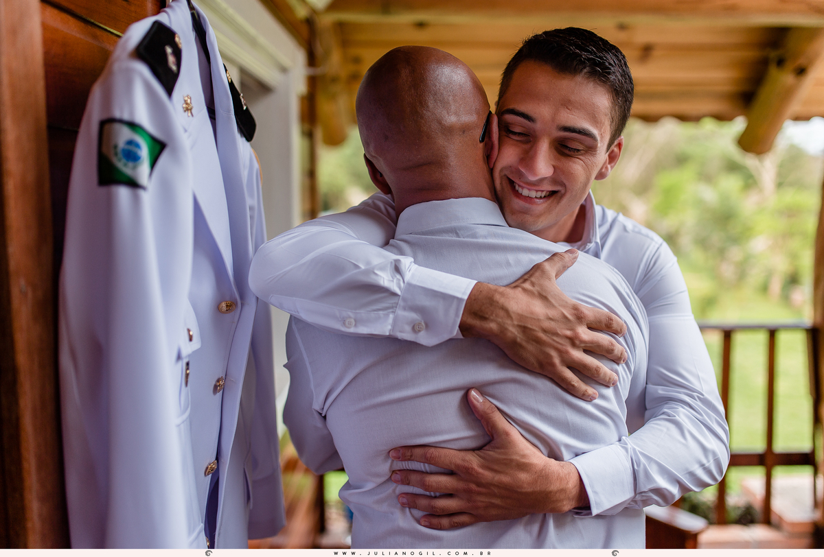 Começamos logo pela manhã do sábado, mais precisamente às 9h11 no Recanto Teodorinho, em Prudentópolis. A Leticya e o Bruno se prepararam no mesmo lugar, porém em ambientes diferentes, o que tornou o momento ainda mais legal, pois à partir de determinado momento ambos não poderiam mais se ver. Quando um precisava sair do quarto existia uma preocupação de que os dois não se encontrassem no ambiente externo.